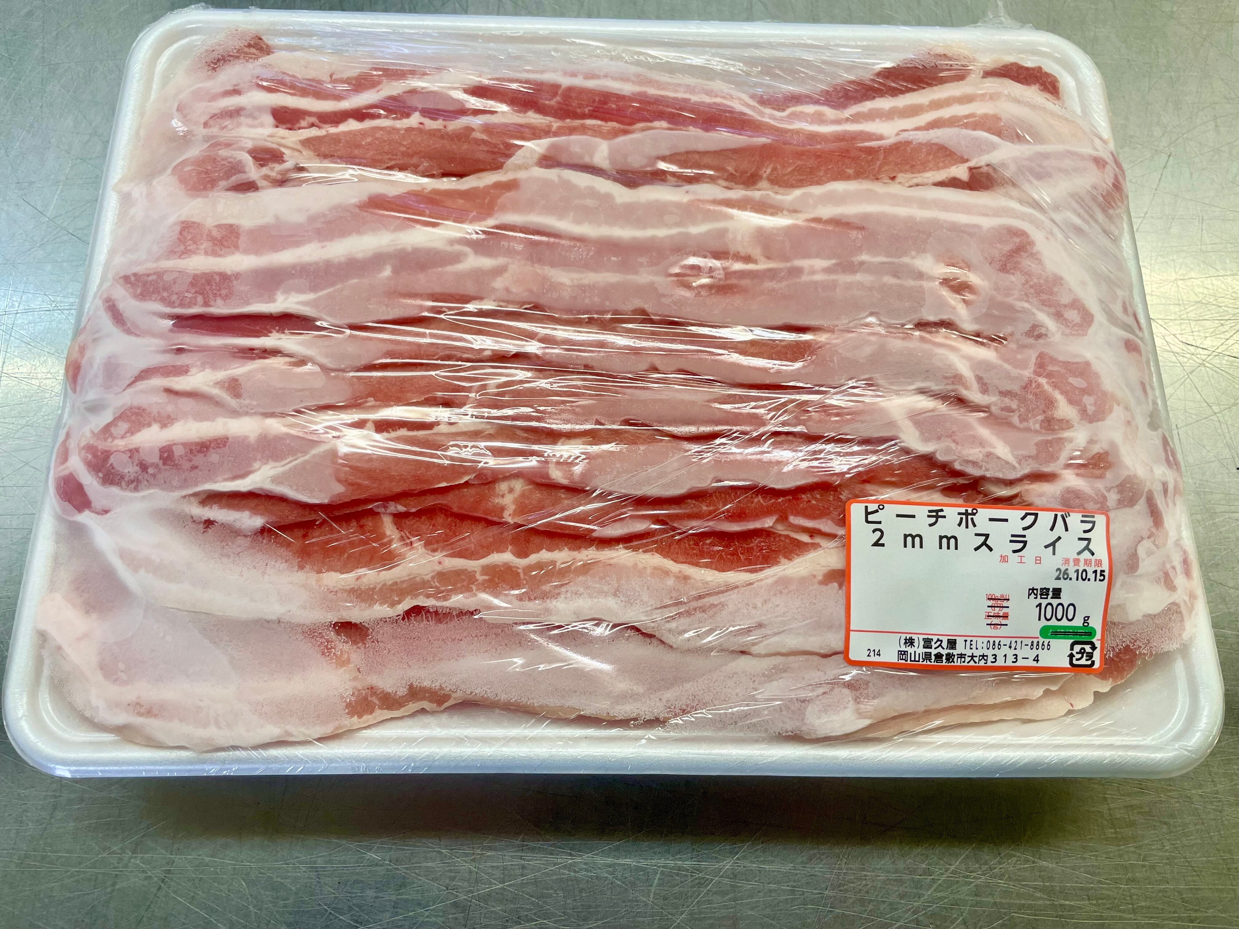 岡山県産ピーチポーク国産豚バラSPF 2mmスライス (1kg×4パック) 計4kg
